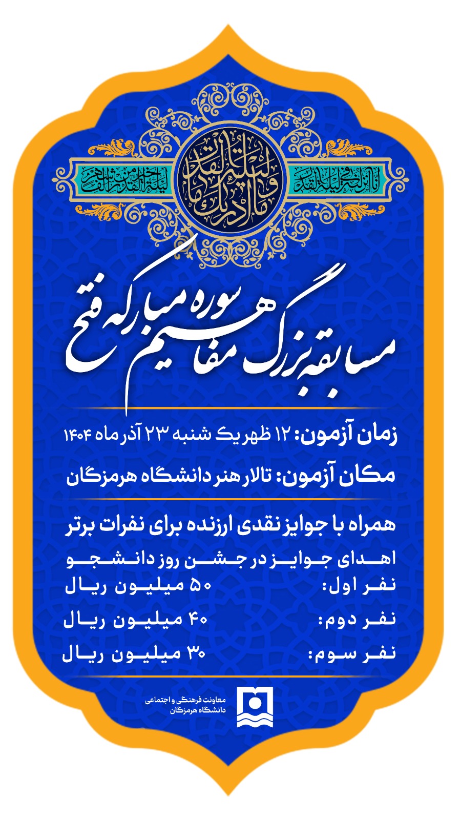- اطلاعات فرم نام نویسی متقاضیان شرکت در مسابقه بزرگ مفاهیم سوره مبارکه فتح
