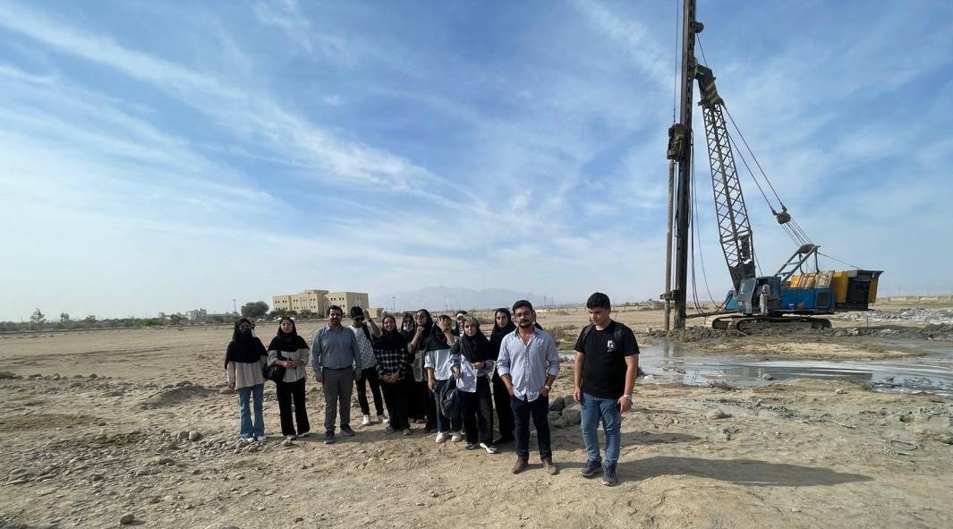 بازدید تخصصی دانشجویان مهندسی عمران از پروژه بهسازی خاک دانشگاه هرمزگان با روش پیشرفته DSM