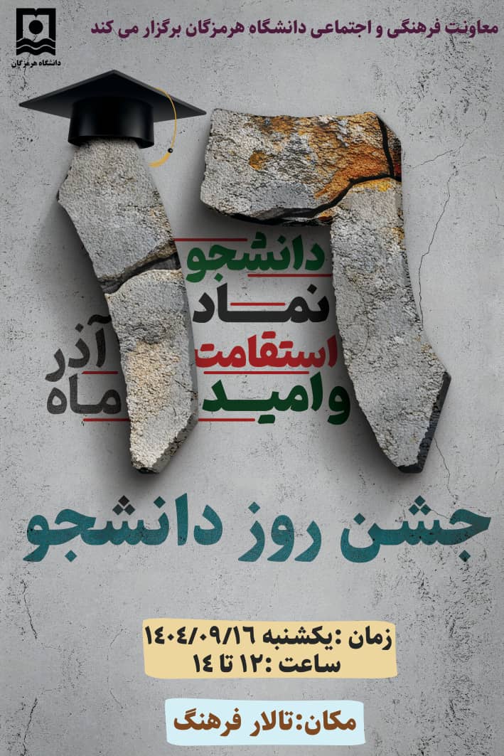 معاونت فرهنگی و اجتماعی دانشگاه هرمزگان برگزار می‌نماید: