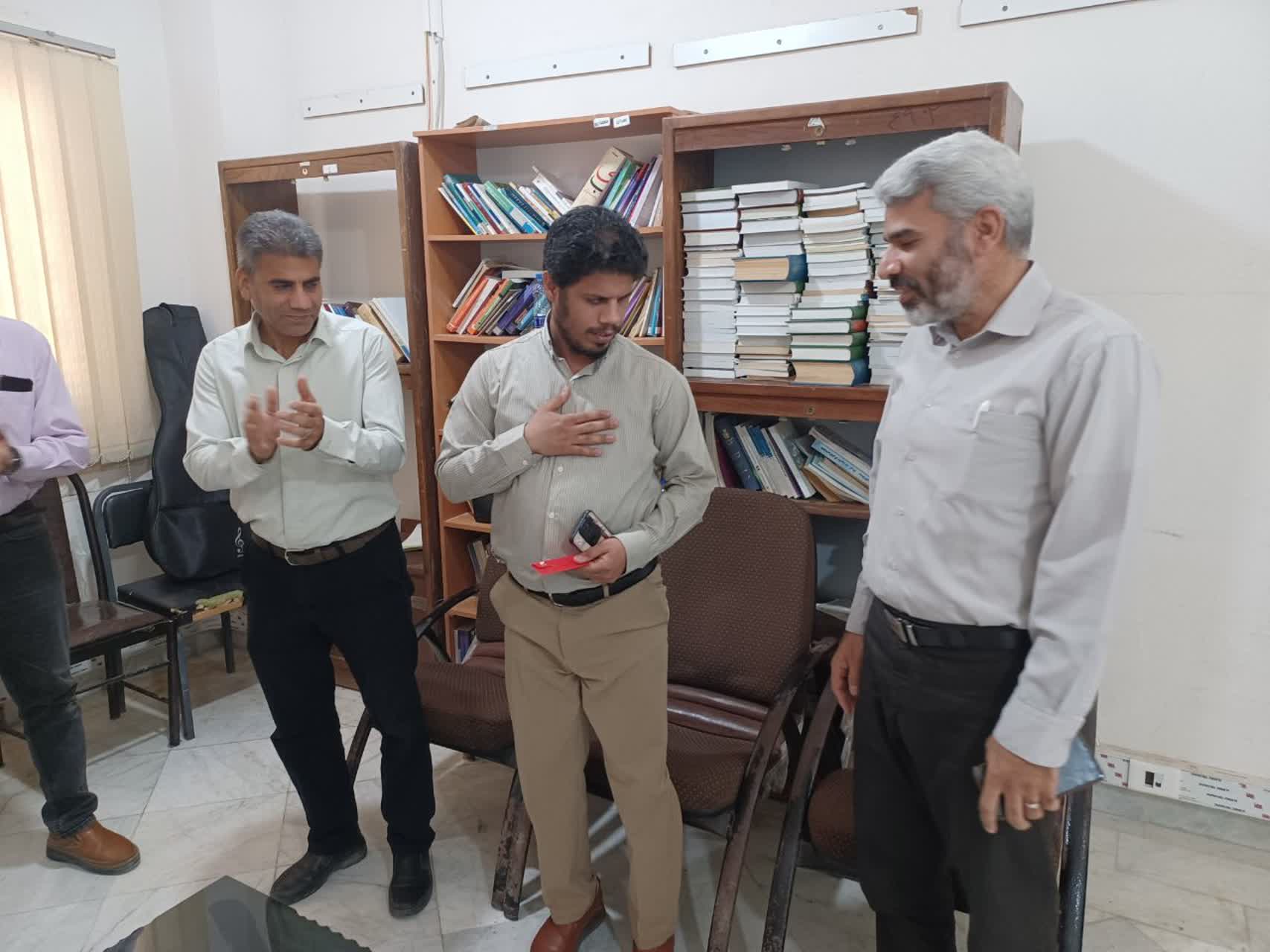 در این مراسم که با حضور جمعی از مدیران، کارکنان و اعضای کانون‌های فرهنگی برگزار شد، از آقای عبدالرسول رئیسی، کارمند روشندل و پرتلاش دانشگاه، به پاس تلاش‌های ارزنده ایشان در بخش مخابرات دانشگاه هرمزگان با اهدای شیرینی و کارت هدیه قدردانی به عمل آمد.